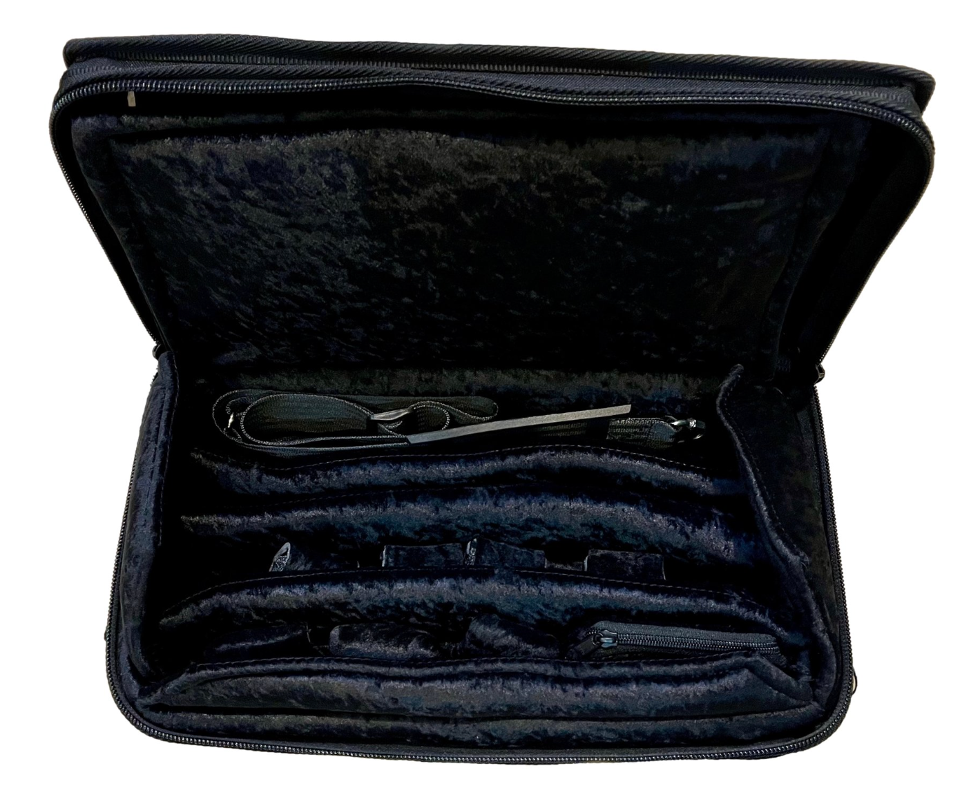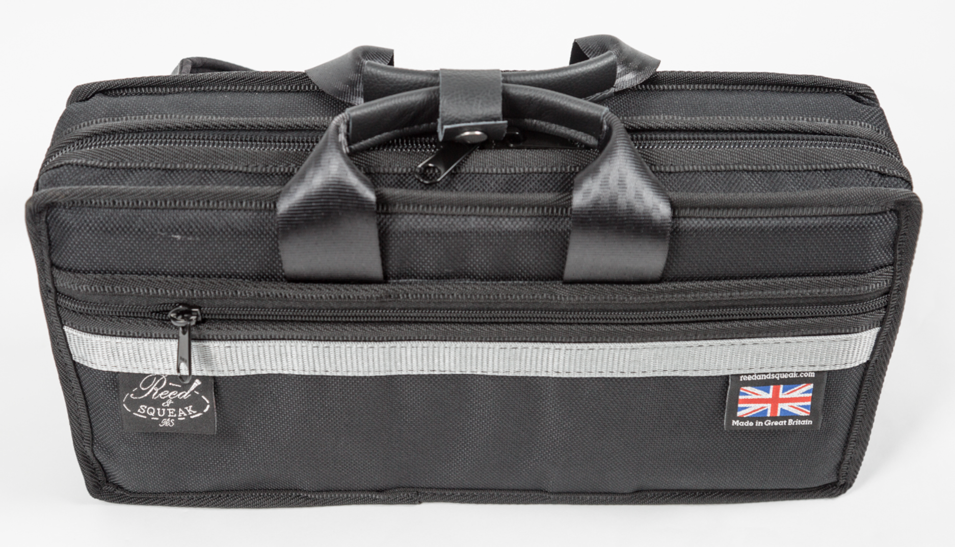 A perfect solution for players using Bb Clarinet and Flute (or Eb clarinet) together. Strong, protective and small. Room for reeds and accessories in a zipped compartment. Ideal for doublers on Bb and Eb. Also perfect for flute (C or B foot) and Bb clarinet. Now has the addition of a flat zipped pocket on the front.
